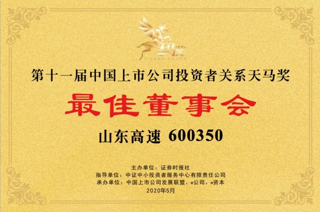 山東高速喜獲“第11屆中國(guó)上市公司投資者關(guān)系天馬獎(jiǎng)——最佳董事會(huì)”